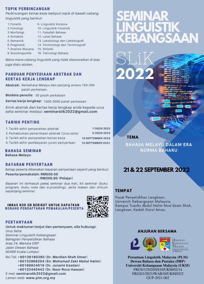 Seminar Linguistik Kebangsaan (SLiK) 2022